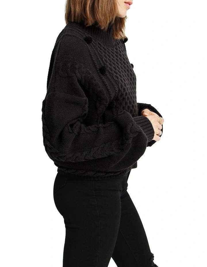 The ultimate statement jumper, theΒ Higher Love Cropped Cable Knit JumperΒ has the trending slouchy, cropped silhouette, adorned with large cable sleeves and pompom details at the front.