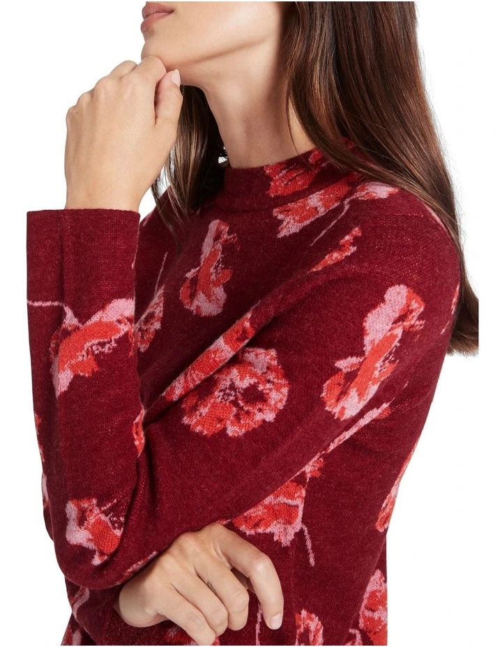 Revealing a rich burgundy hue, this knit sweater cant help but draw the eye to its striking floral design in shades of pale pink and red. Beautifully soft against the skin, the sweater is made fromΒ wool blendΒ yarn, flowing effortlessly through a regular fit, finished with long sleeves and a high rib neckband.