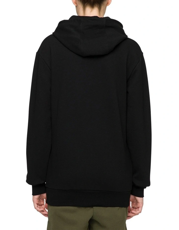 - Tubular knit drawcord hood with branded metal ends through branded metal eyelets