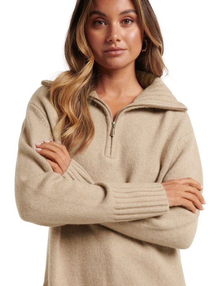 Feminine design meets trending style. The Reeva Zip-Neck Knit Jumper from Forever New is the piece your wardrobe’s been waiting for.