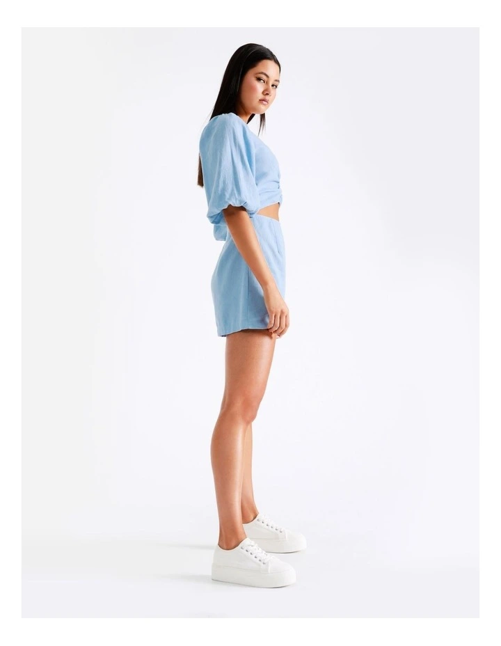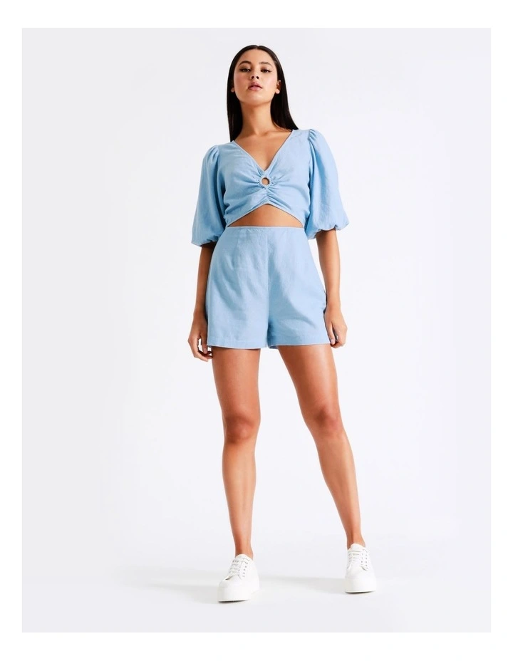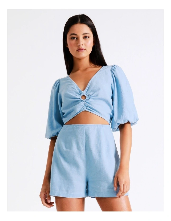Miss ShopΒ Linen Ring Detail Playsuit in Blue