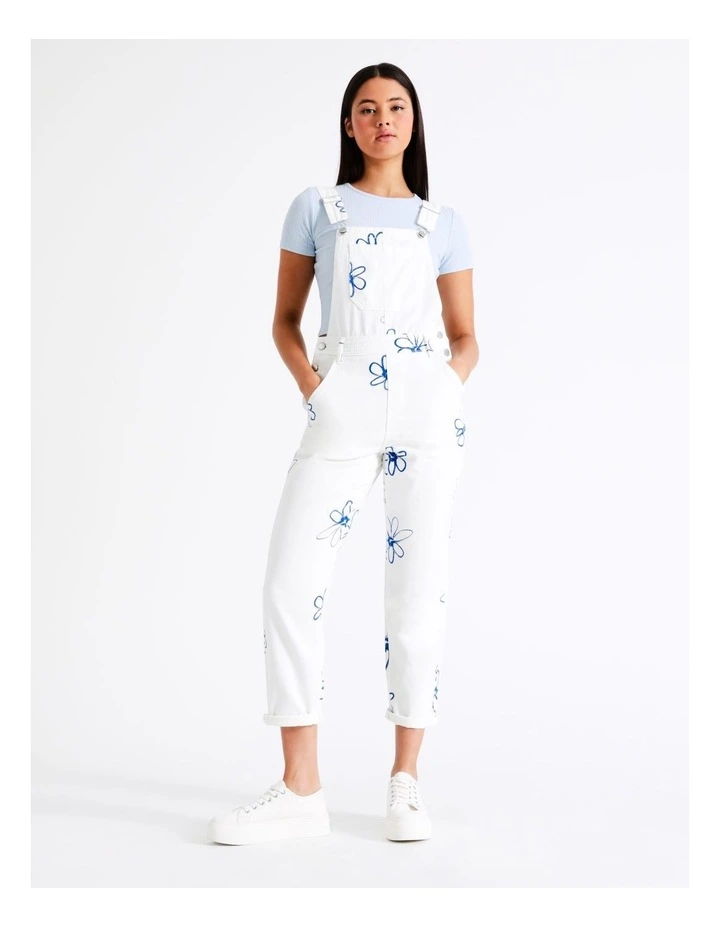 Miss ShopΒ Recycled Blend Printed Denim Dungaree in White Floral Scribble