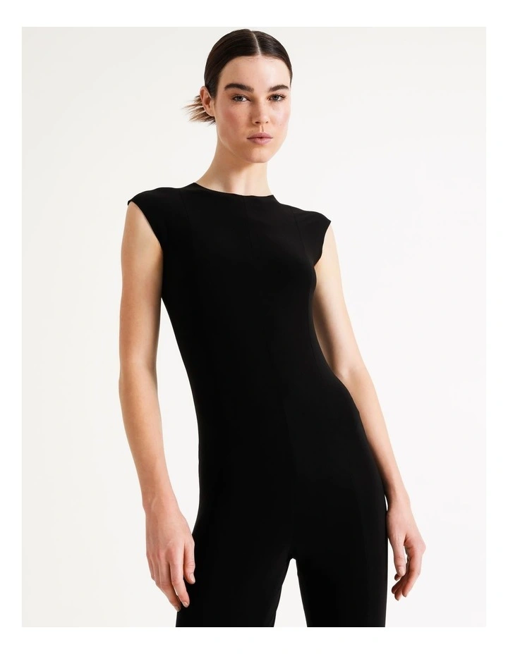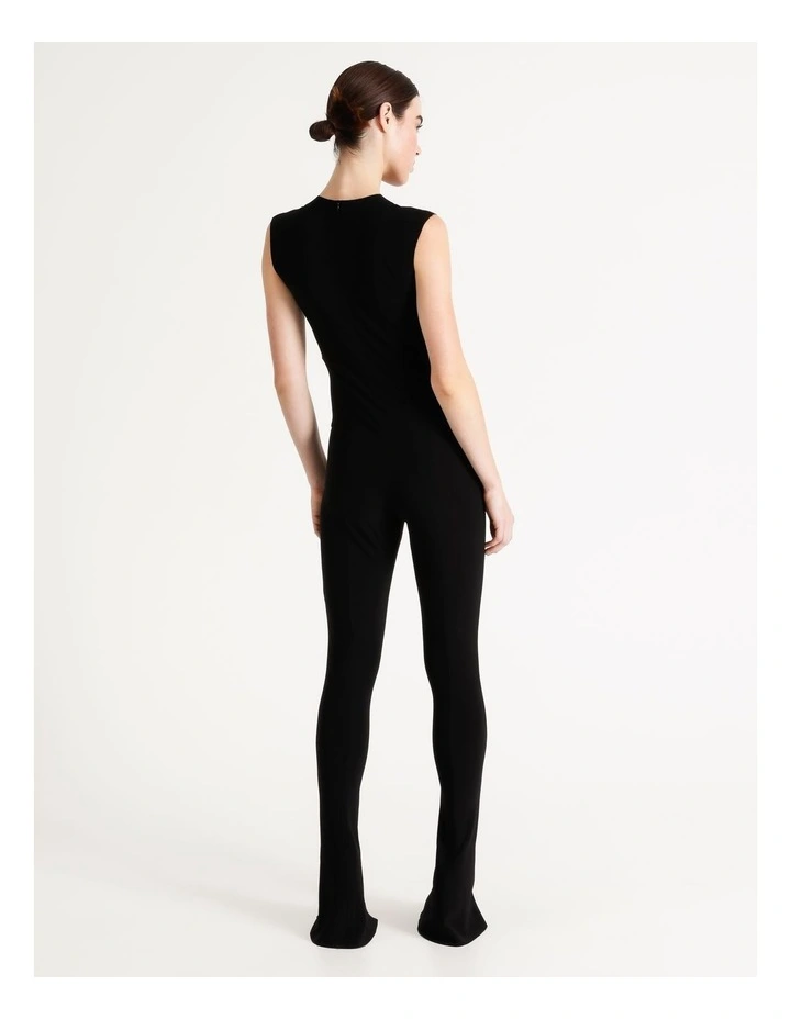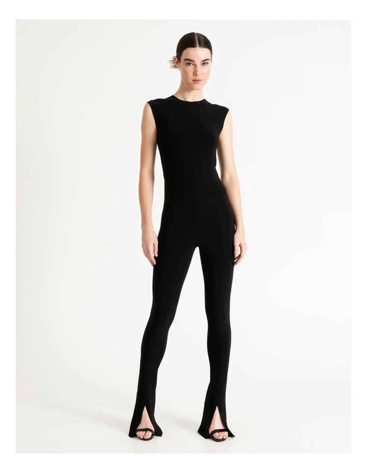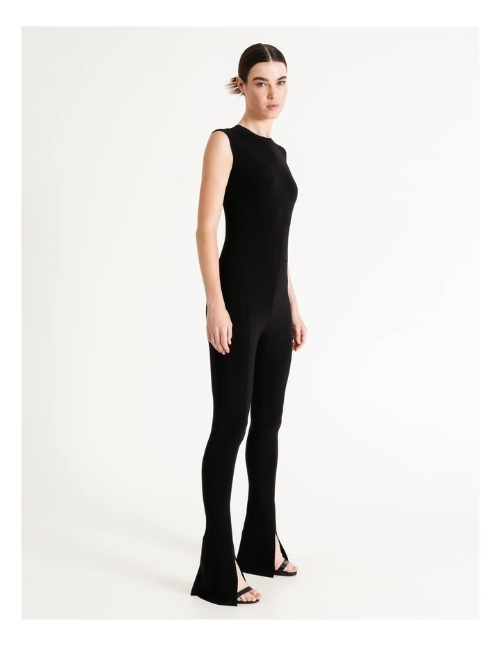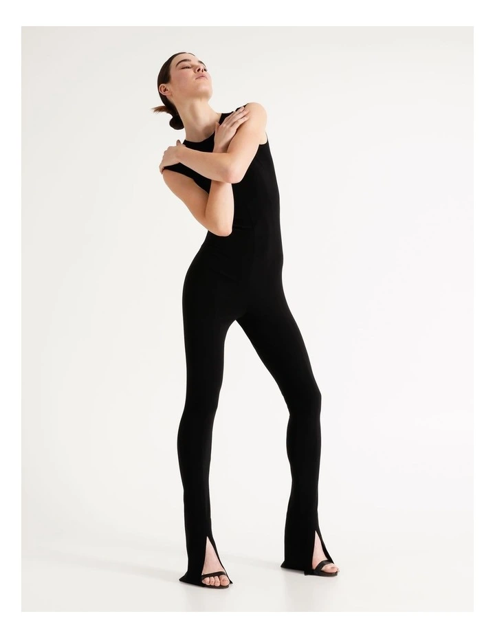 Like a modern version of the catsuit, our Sleeveless Spat Legging Catsuit is as streamlined as you can get. Made from our signature easy-care and wrinkle-free stretch jersey with a simple crewneck, slim hip and soft, slim leg with a center cut slit.