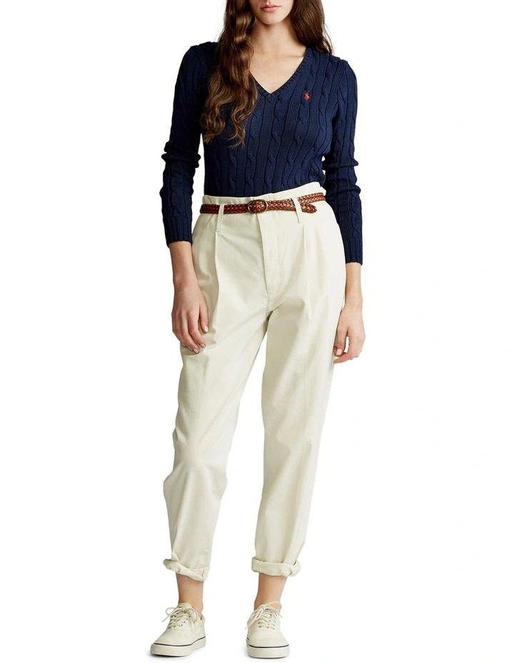 With its cable-knit construction and slim-fitting silhouette, this cotton V-neck sweater is a timeless style with modern allure. It’s finished with our signature embroidered pony for heritage-inspired flair.