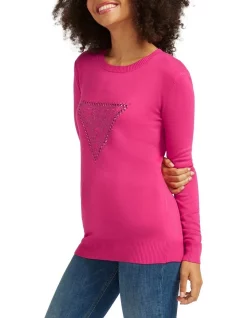 Top 10 😀 Guess Paulette Round Neck Long Sleeve Sweater Medium Charcoal Heat ⭐