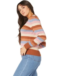 Outlet π Princess Highway Mika Stripe Loose Sweater Tan π