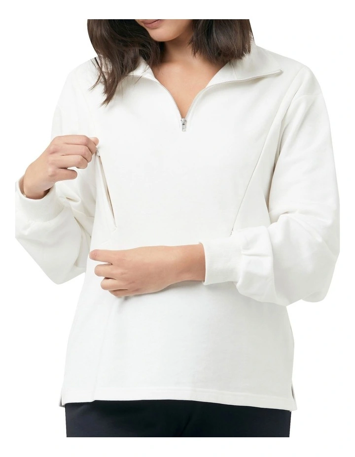 Stay warm and cosy in the Finn Nursing Jumper. This style features a relaxed fit, extended shoulders, long sleeves and a centre front neckline zipper. The invisible zippers at side front offer discreet nursing access.