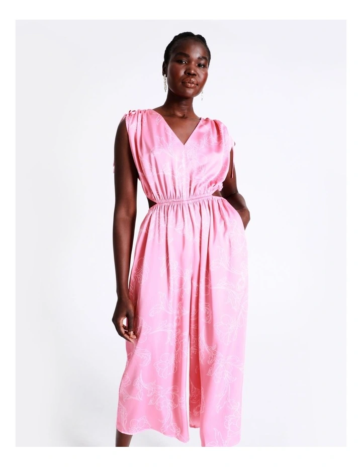 Get ready for the night with a sophisticated jumpsuit. This relaxed fit jumpsuit is coloured in a striking fuchsia tone, with a V-shaped neckline and cut out details at the waist. Style with your favourite heels for the perfect look.Β