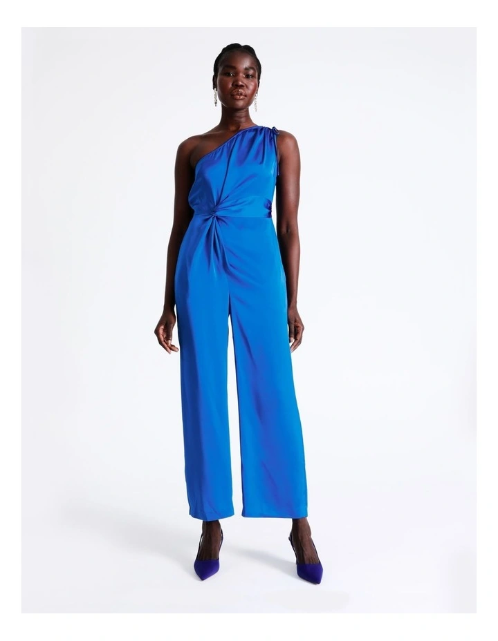 Wayne CooperΒ One Shoulder Twist Jumpsuit in Cobalt
